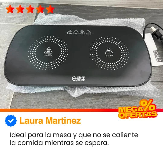 Cada vez que recalientas, los alimentos pierden su sabor original. Esta bandeja mantiene el calor constante, asegurando que tus platos conserven su textura y sabor deliciosos, como recién hechos, sin necesidad de microondas.