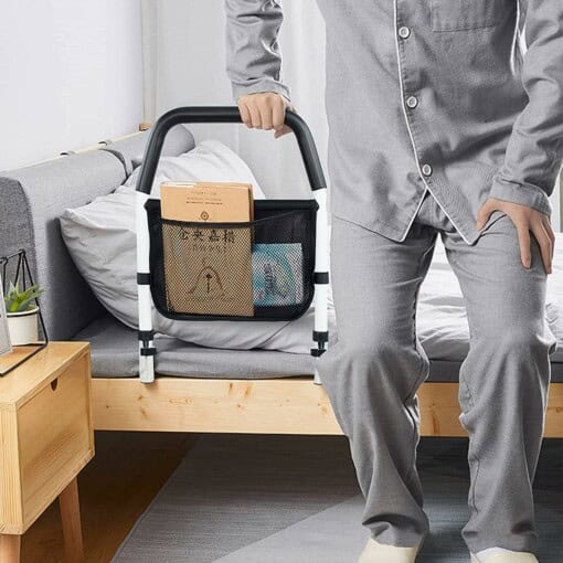 Esta barra ofrece un apoyo firme y seguro para que los hombres mayores se levanten de la cama sin esfuerzo, evitando caídas y aumentando la confianza en sus movimientos diarios.