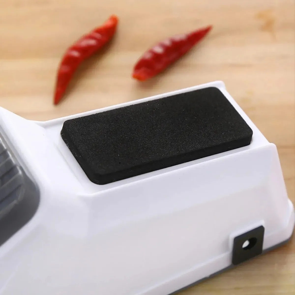 Olvídate de los cuchillos sin filo y cocina con total confianza con este afilador eléctrico práctico y seguro.