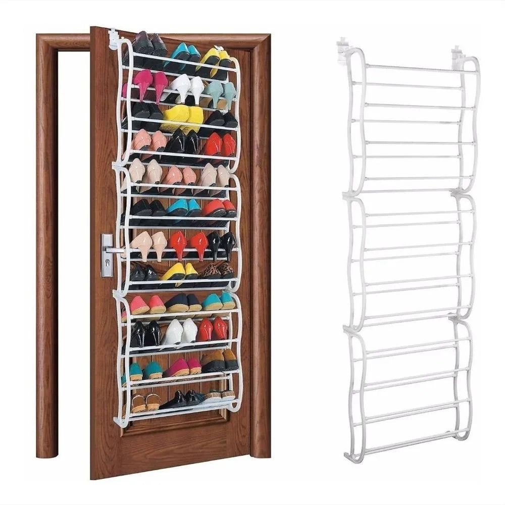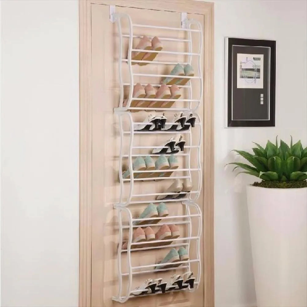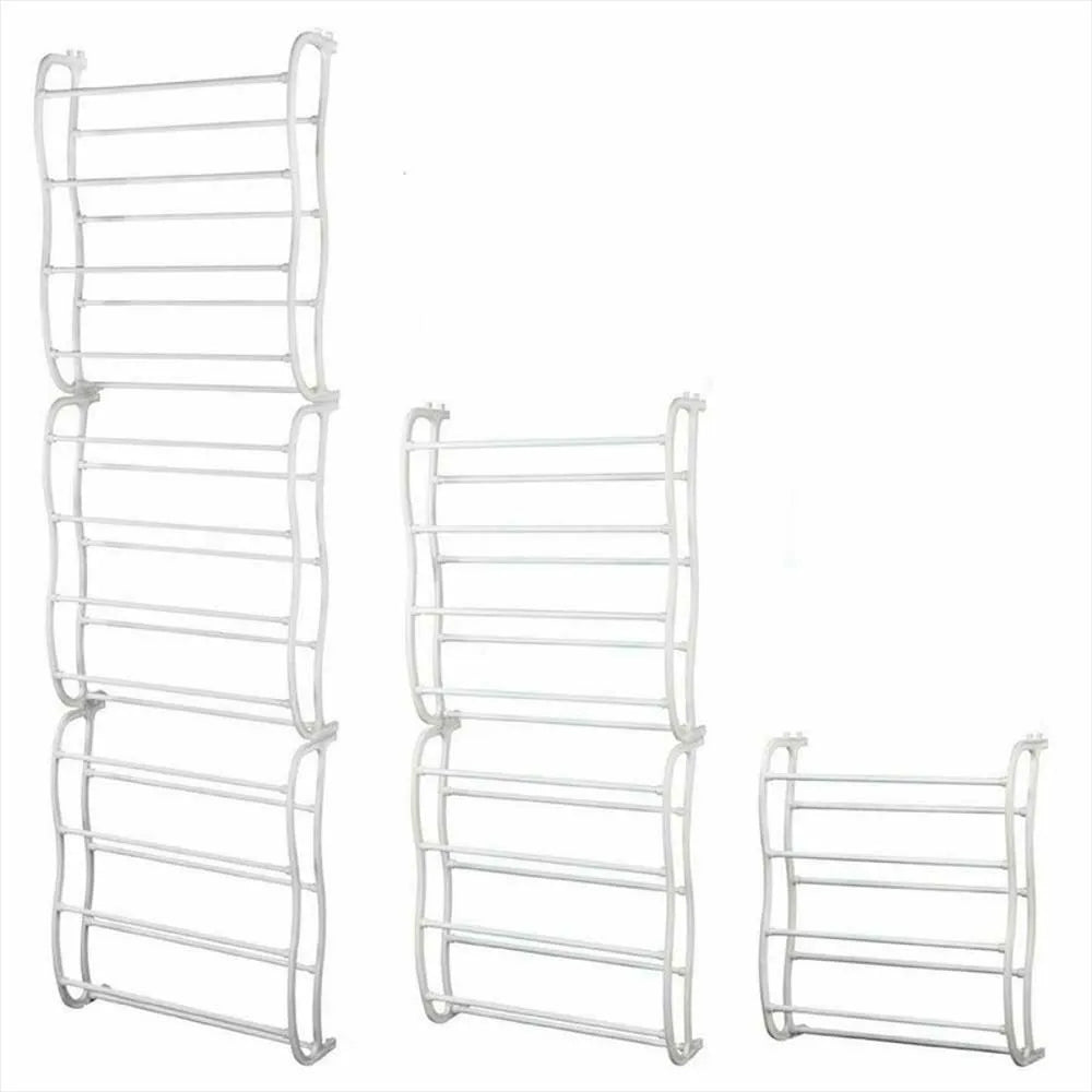 No necesitas herramientas. Solo coloca los ganchos sobre la puerta y cuelga la zapatera. Su estructura ligera y resistente la mantiene firme incluso con peso, sin dañar la puerta.